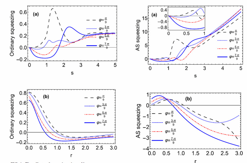 我们知道具有压缩效应、亚伯松分布等非经典特征的量子态是量子信息处理和研究量子理论中基本问题的重要资源。因此,产生并优化拥有压缩效应的量子态对以上问题的执行有很大的促进作用。论文利用一种新的压缩定义来探究后选择冯·诺依曼测量对增单光子相干(SPAC)态所携带的辐射光场压缩效应的影响。我们发现在弱测量范围内(图1),随着弱值的增加,SPAC态的一阶压缩和振幅平方(二阶)压缩效应比无后选择测量有显著增加。为了更好的解释其压缩效应的变化,探讨了测量前后相空间函数(Wigner函数)的变化情况,发现后选择测量后随着弱值的变大SPAC态的相空间分布(图2)不仅受到明显的压缩,而且在强测量范围内也显示出很显著的干涉结构,同时也具有非常突出的非经典性--相空间中出现的的负面积变大。基于量子弱测量技术的这量子态优化方案为解决与SPAC态相关的量子信息处理中的实际问题提供一种有效的执行方法,并对其他量子态的优化和操控也有参考价值。