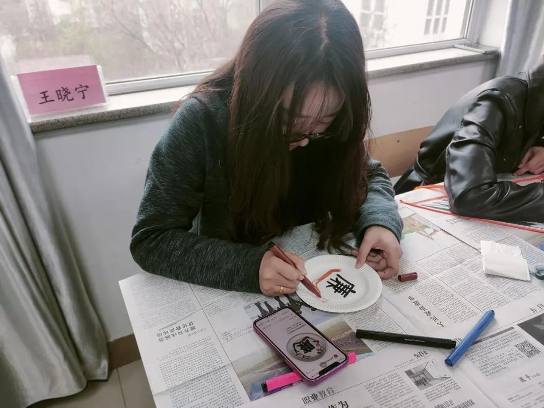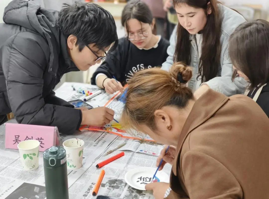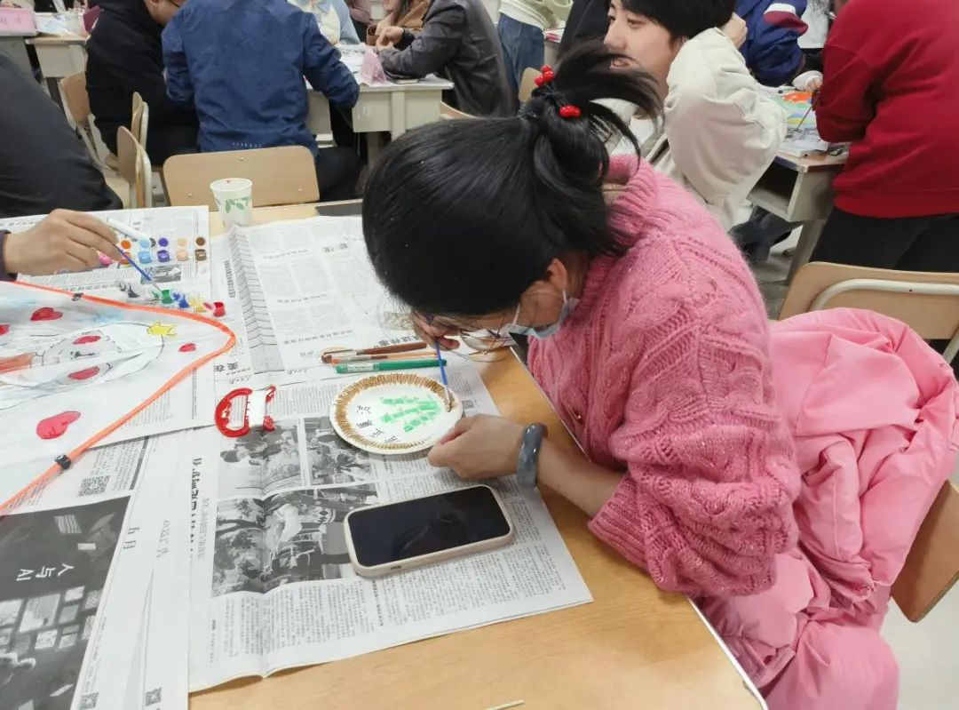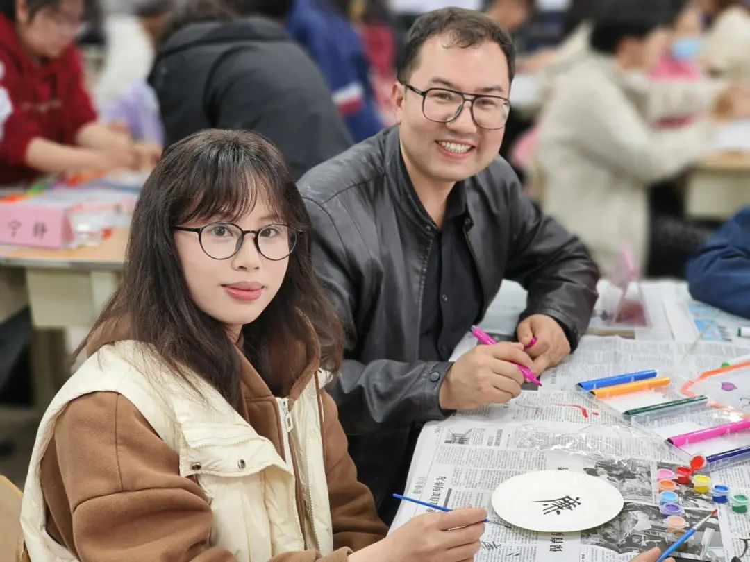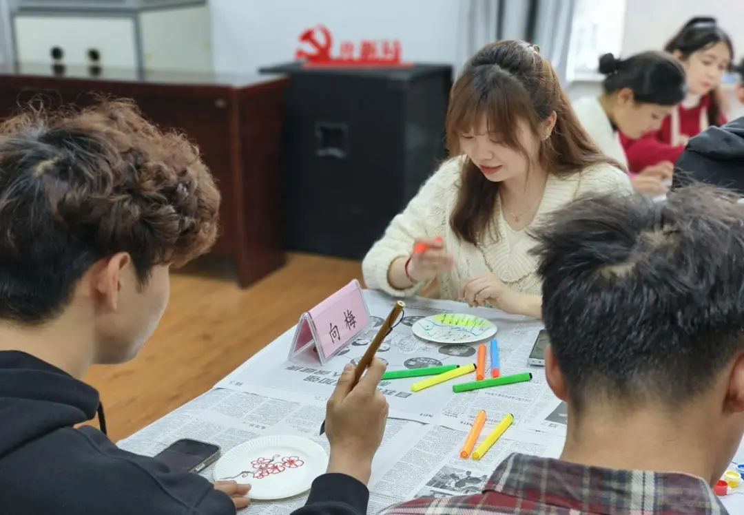 学院党委副书记、院长向梅老师和同学们绘制盘画