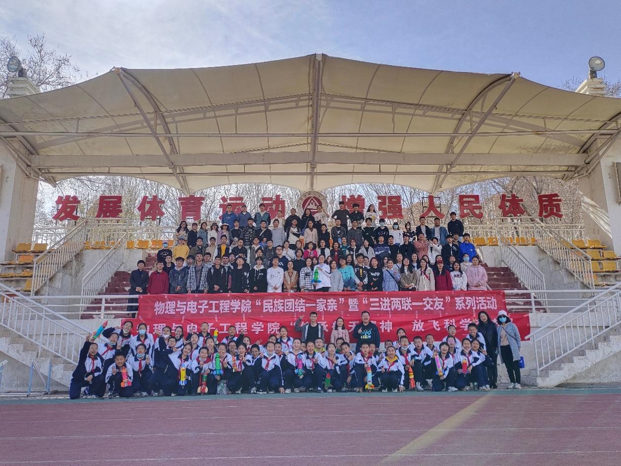beat365正版唯一官方网站本科生第一党支部举办了“传承航天精神,放飞科学梦想”航天科普实践暨主题党日活动,邀请了学院党委书记李莉老师、学工办主任徐丽屏老师、物理系系主任帕尔哈提江·吐尔孙老师以及部分三进两联一交友老师、同学们和师大附小直升班的学生现场共同制作“水火箭”,并进行了比赛,体验一飞冲天的科普乐趣!本次活动既培养了学生实践动手能力,也进一步增进了师生情感,营造了和谐、团结、友爱的民族团结氛围,让广大师生在实践中感受了航天魅力、激发了科学兴趣、启迪了科学智慧、尽享了科普乐趣,一起以航天梦托举中国梦。