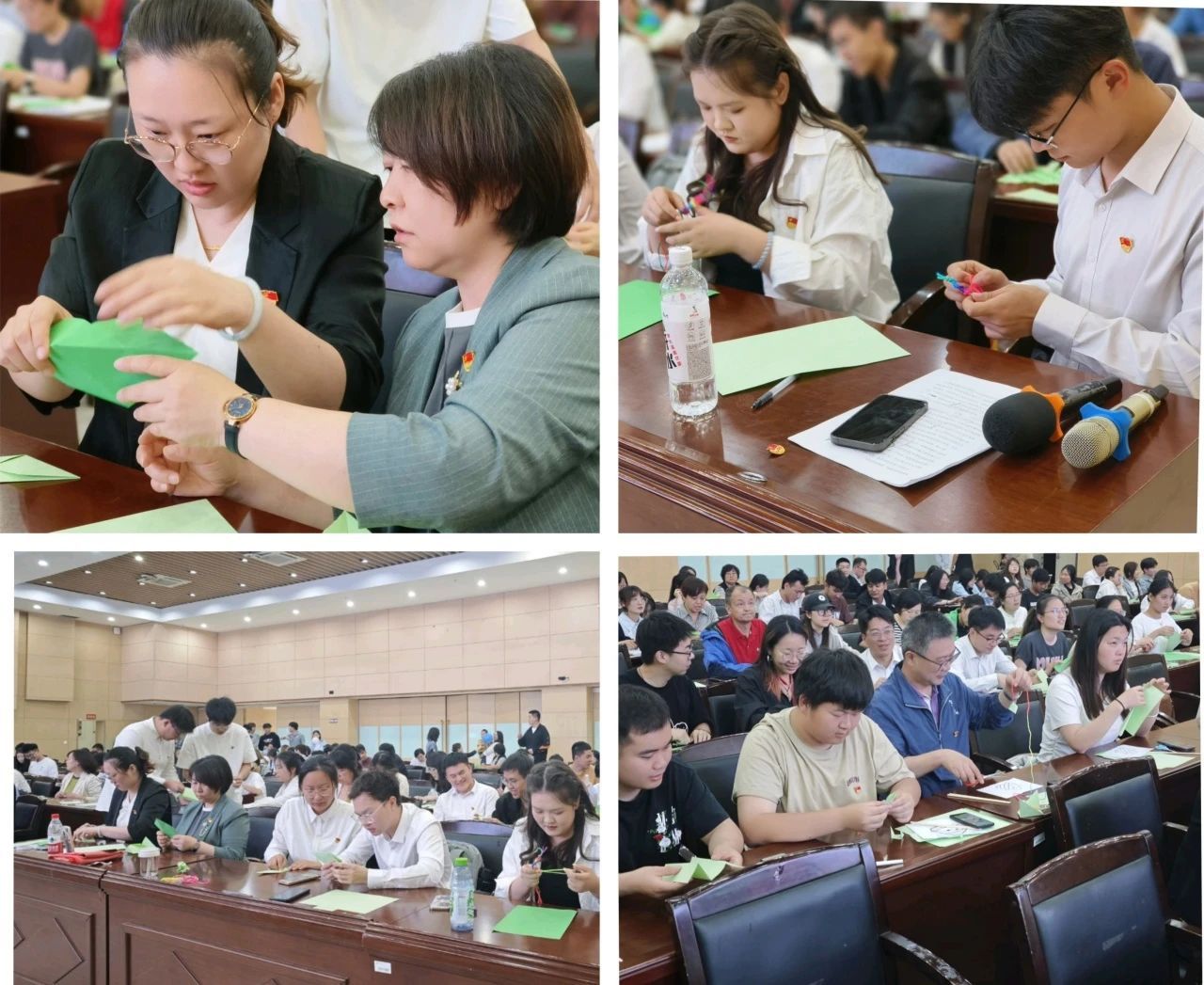 “‘节分端午自谁言?万古传闻为屈原。’这首诗的作者是?”“刘禹锡!”诗词竞答环节,师生党员热情高涨,从屈原的爱国诗赋到端午的民俗典故,师生党员在诗词中感悟古人的清廉品格,在竞答中厚植廉洁基因。“折一只粽子,写一句初心;叠一艘龙舟,寄一份同心。”作为活动的“重头戏”,“粽香端午·纸艺传情”手工体验将氛围推向高潮。党员们围坐桌前,跟着示范学习折纸:有的在“粽子”上写下“为党育人,立德树人”的教育初心,有的在“龙舟”上题下“师生携手,奋楫争先”的奋斗誓言。本科生党员张一涵举着自己折的“龙舟”笑道:“以前总觉得端午就是吃粽子,今天才明白,折龙舟不仅是动手,更是把‘同心’二字折进纸里、刻进心里!”