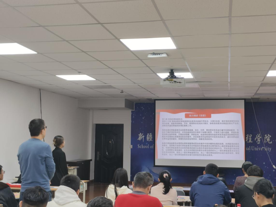 首先,全体党员一起认真学习了习近平总书记近期关于主题教育重要讲话重要批示精神和习近平总书记主持二十届中共中央政治局第九次集体学习时发表的重要讲话。随后,在党委副书记、纪委书记买星的带领下重温了入党誓词,党员接力诵读了《中国共产党章程》第八章内容——党的纪律检查机关。
