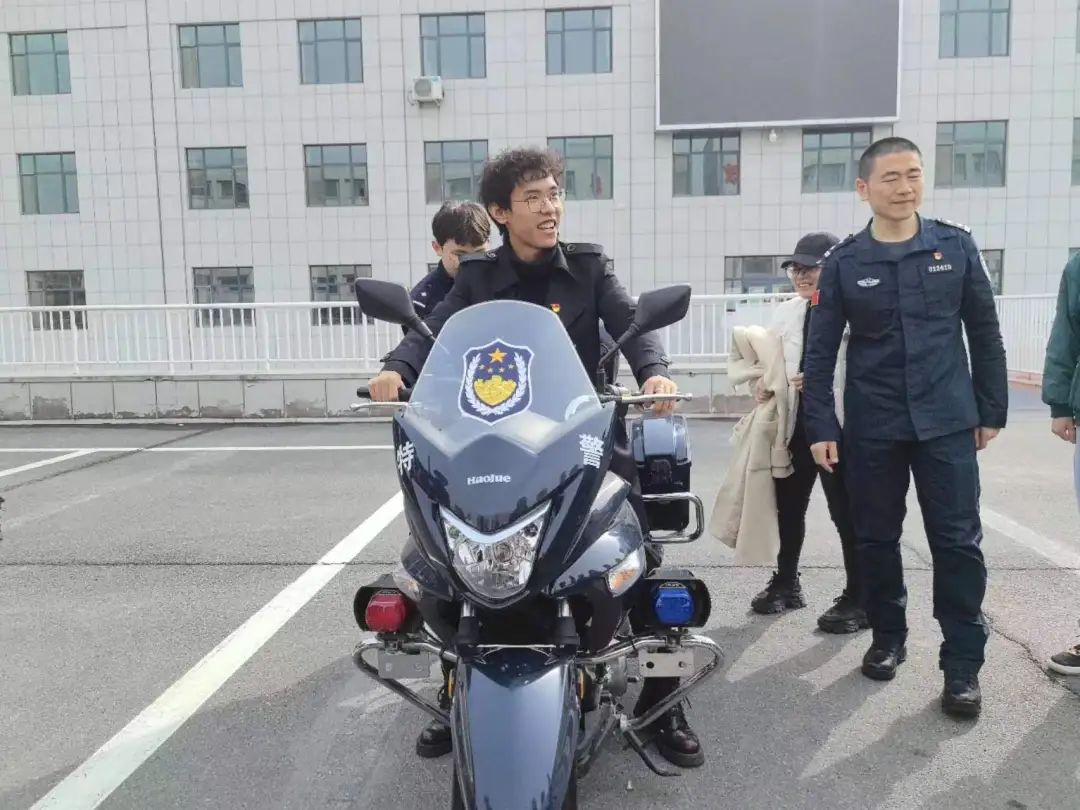 在特警支队党员同志们的带领下,同学们还亲手触摸试穿了特警的战术背心、头盔、护目镜等装备,体会特警队员工作的艰辛。