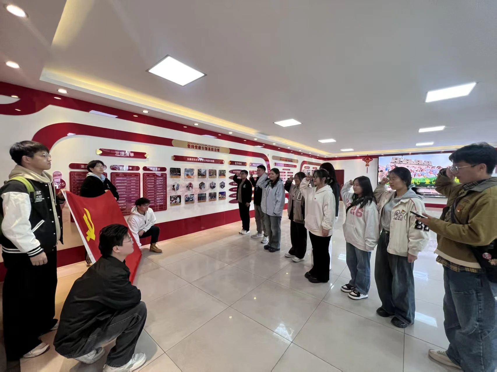 活动伊始,全体党员作为志愿者配合固原巷社区工作人员及社区居民举办了“世界读书日”活动,共同完成了“百人诵读”打卡并交换了读书寄语卡。随后在社区工作人员的带领下参观了社区国学课堂、非遗工作室、阳光巴郎科普教室等多个功能室。通过参观,党员们了解到固原巷社区曾被授予全国“最美志愿服务社区”、“全国学雷锋活动示范点”、第六批“全国民族团结进步创建示范社区”荣誉称号。在参观过后,全体党员在党支部书记赵海琴老师的带领下面向党旗重温了入党誓词,接力诵读了《中央八项规定实施细则》。物理学21-1班党员岳紫欣说:通过这次活动,我看到社区各民族居民和谐相处,齐心协力为社区的发展贡献力量深深地感染了我,这种团结互助的精神值得我们学习和传承。