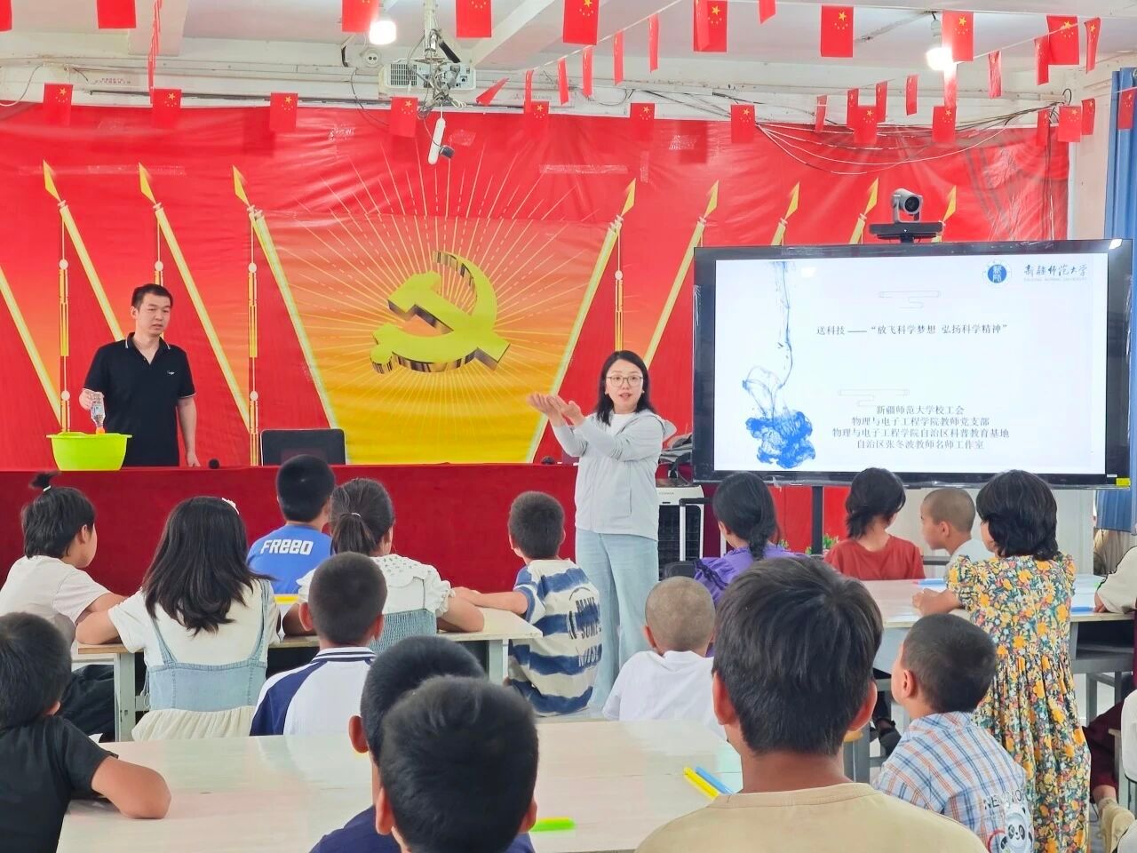 为贯彻落实学校党委关于文化润疆工作的部署安排,积极探索南疆基础教育帮扶新模式,助力乡村振兴和民族团结进步事业,7月14-15日,beat365正版唯一官方网站教师第一党支部党员老师赴莎车县孜热甫夏提塔吉克民族乡开展了“三人行 · 融合行”科普教育实践活动。此次活动得到学校工会、驻莎车县前方党工委、驻村工作队和校团委的大力支持,全乡150余名中小学生参加活动。