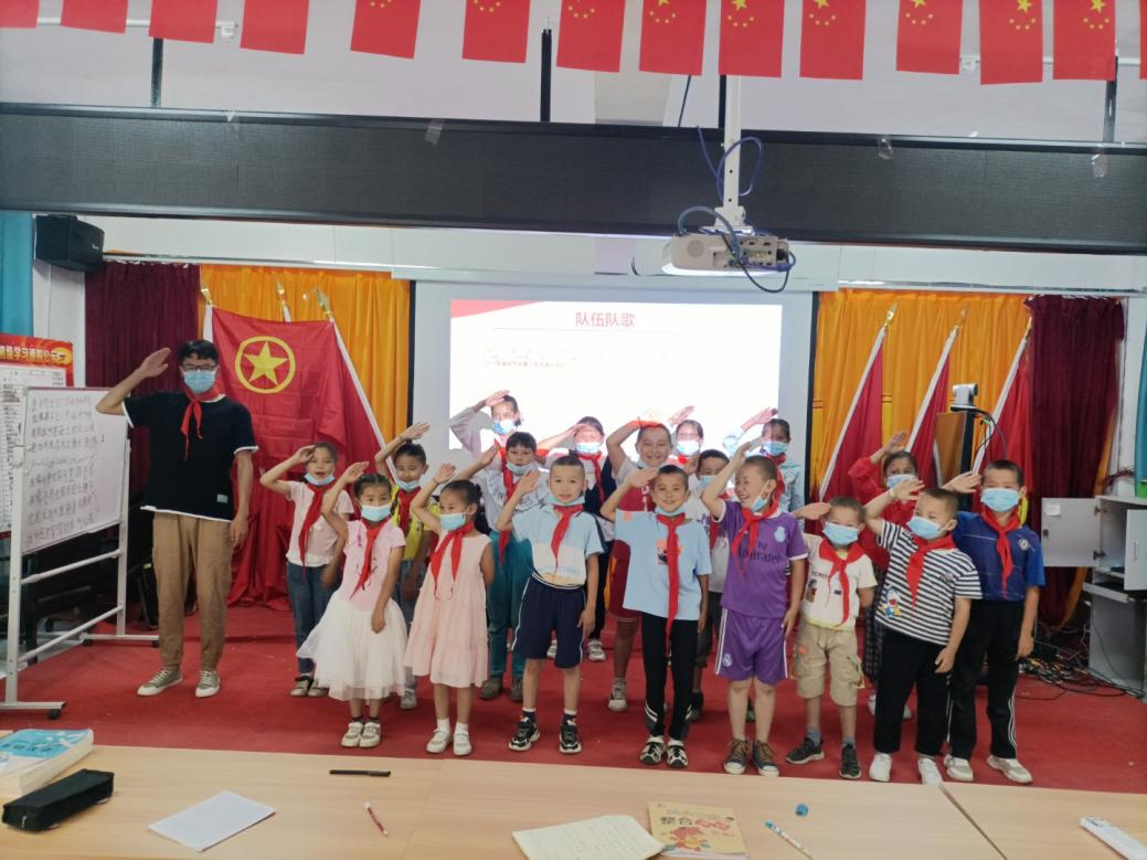 哈斯尔别克·热合曼同学带领小朋友唱队歌