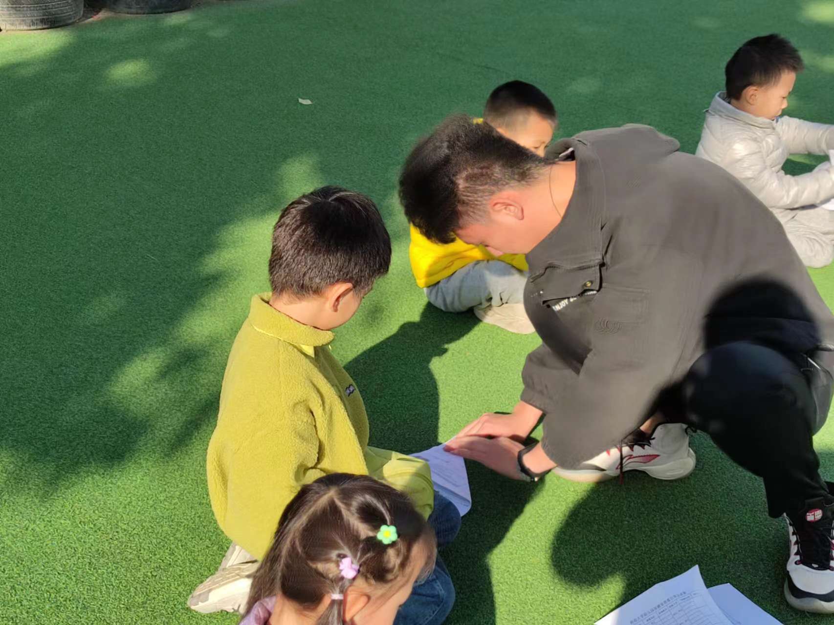 苏易耀带着孩子们做“影子捕手”的准备