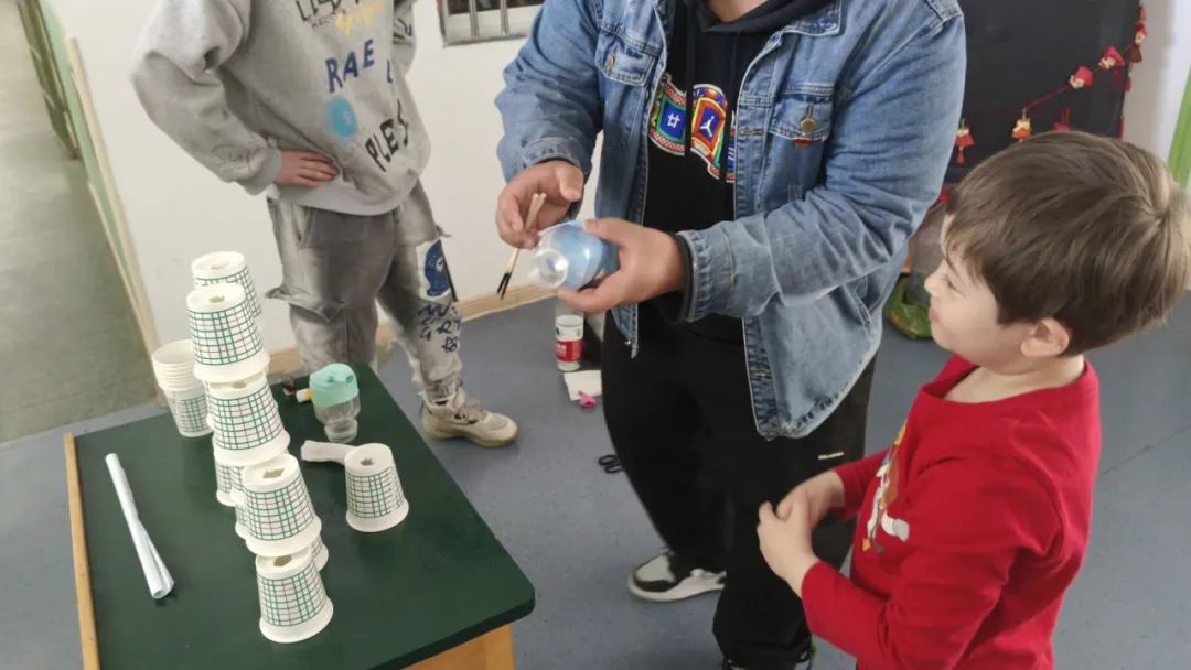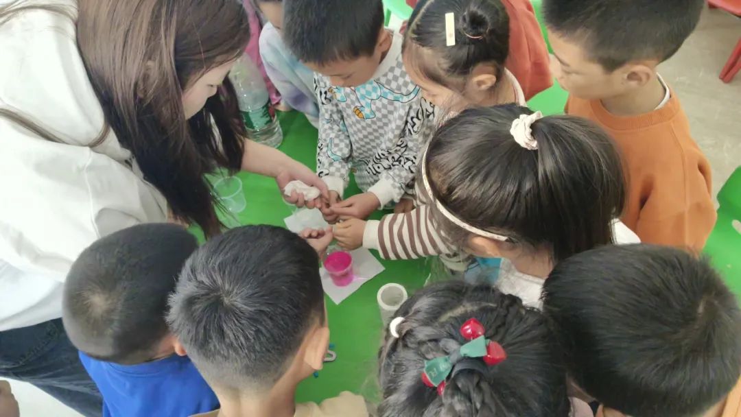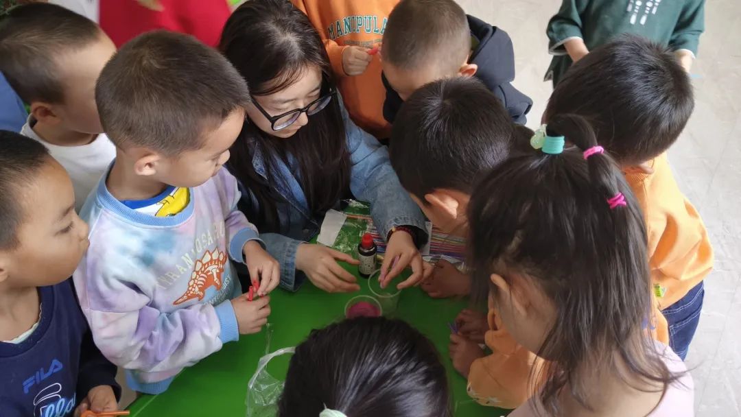吕舒淇,周洁带领小朋友们演示实验
