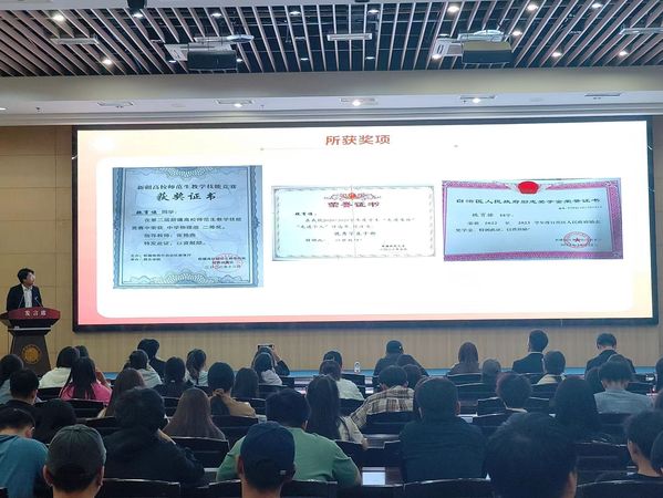 会议邀请了2024届毕业生中已就业和升学的6名学长学姐进行分享。签约中国民航新疆空管局的电子信息科学与技术20-5班刘乐建议大家首先要明确自己的目标,之后可以多咨询学长学姐,利用好身边的资源,要敢于尝试不要害怕失败。考取“硕师计划”的物理学20-1班魏育慷介绍了推免条件以及自身的经历,并强调大家一定要明确目标,努力去向它靠近,克服困难,勇敢拼搏。考取山东大学硕士研究生的物理学20-4班翟西洋讲述了自己的考研经历和大学四年获取奖学金的学习经验,并分享了自己在备考时的方法和技巧。考取和田地区选调生的物理学20-1班伊卜拉伊木江·依马木山介绍了报考选调生所需条件和相关注意事项,并向大家分享了自己考选调生的经历和经验。签约库尔勒华山中学的物理学20-4班闫诗卓强调了简历准备的重要性,并建议大家要多关注相关招聘信息并做好充分的试讲准备。考取beat365正版唯一官方网站硕士研究生的物理学20-1班窦凤怡分享了自己的考研复习准备和考取本校的优势,并针对考研的科目展开了详细的备考讲解。互动答疑环节,在场的同学们根据自己的实际情况和求职意愿踊跃发出提问,学长学姐分别就问题认真回答,鼓励同学们要敢于挑战自己,积极面对未来道路上的困难。