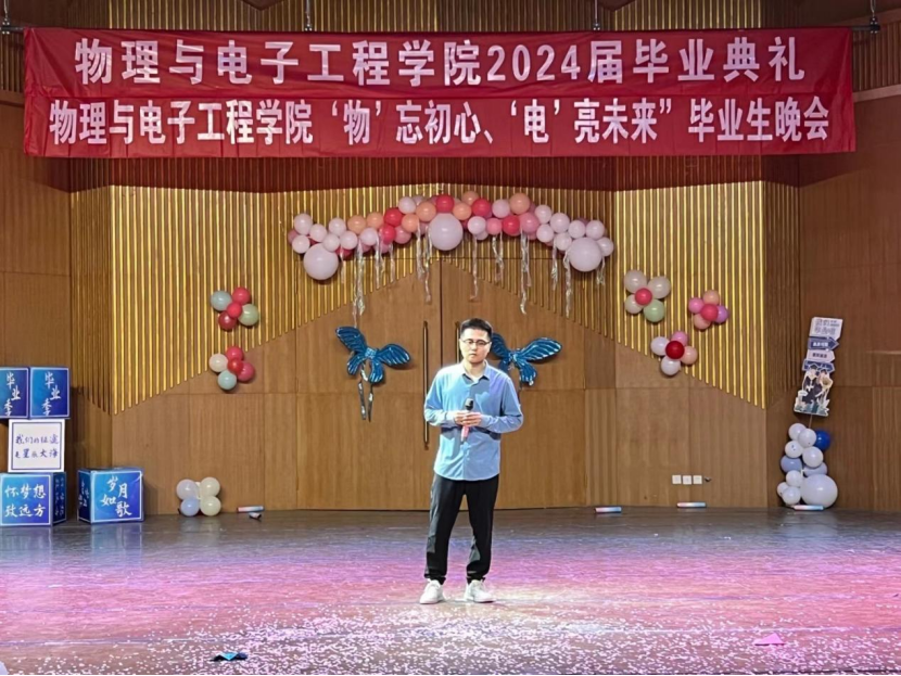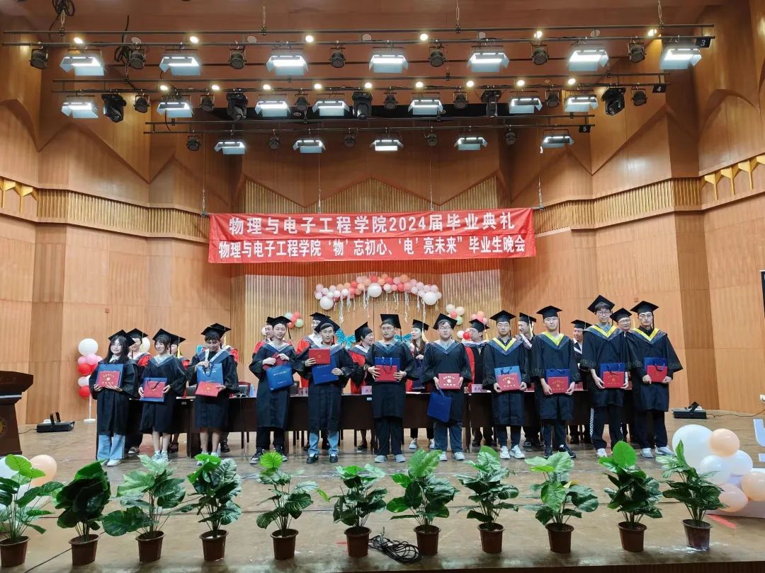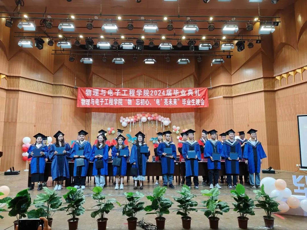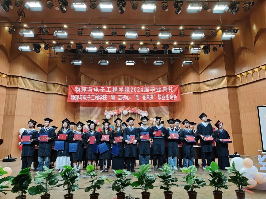 蕙风如薰,花开半夏,骊歌轻起,毕业又至。2024年5月31日晚,beat365正版唯一官方网站2024届毕业典礼暨“‘物’忘初心、‘电’亮未来”毕业生晚会在昆仑校区音乐厅举行。学院领导班子、学院学术委员会成员、毕业班班主任及辅导员、2024届全体毕业生和各年级学生代表参加典礼。学院党委副书记、纪委书记买星老师主持本次会议。