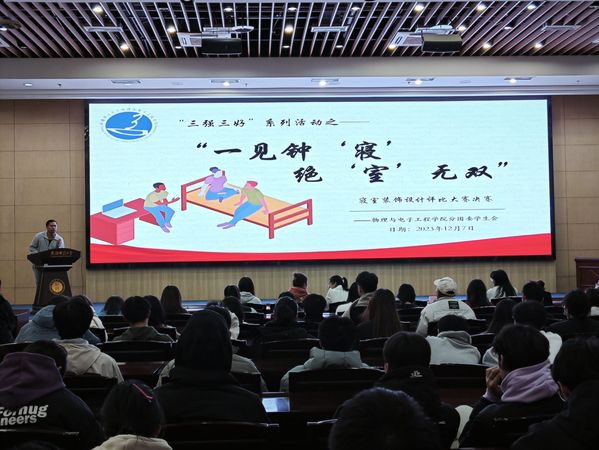 为促进我院学风建设,发挥社区育人功效,进一步深化beat365官网“三强班级”“三好宿舍”建设达标与评优活动,beat365正版唯一官方网站于2023年12月8日晚在国际教育大厦一楼组织召开第四届“一见钟‘寝’,绝‘室’无双”寝室装饰设计评比大赛。学院党委副书记、纪委书记买星,学工办主任徐丽屏,辅导员木力扎提·马合木提、宁静、郑叶,分团委副书记赵燕燕担任评委,2023级200余名同学共同参与此次活动。