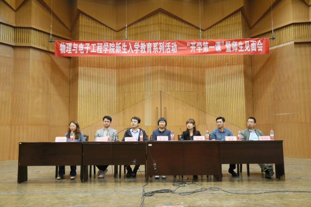 在硕果飘香的金秋时节,物电学院迎来了朝气蓬勃的2023级新生们,师生见面会在雄壮的国歌声中拉开序幕。为表达对新同学们的热烈欢迎,学院全体辅导员、2023级班主任、2023级青葵助励小导师依次为新同学们送上祝福,物理系主任帕尔哈提江·吐尔孙老师、电子系韩振华老师分别从专业建设、机构设置、人才培养、科学研究、学科方向、导师队伍、就业前景等方面为2023级新生做了物理学专业、电子信息科学与技术专业的详细介绍。最后,学院党委副书记、院长向梅对全体2023级新生寄语,她希望同学们,一要打牢学业根基,在“厚德明志格物创新”中把握人生航向;二要锻造坚韧不拔的毅力,保持人生定力;三要牢记自己的初心和坚守,加强自我约束、自我管理、诚实守信,树立积极向上的人生态度。牢记习近平总书记的嘱托“让青春在全面建设社会主义现代化国家的火热实践中绽放绚丽之花。”