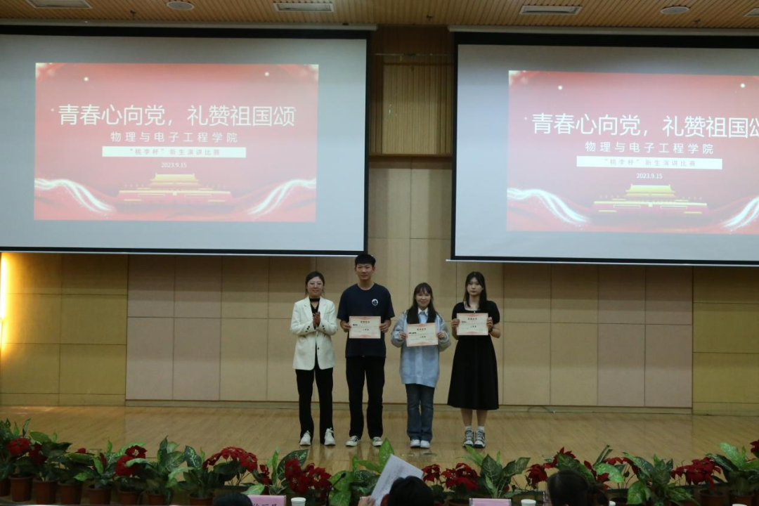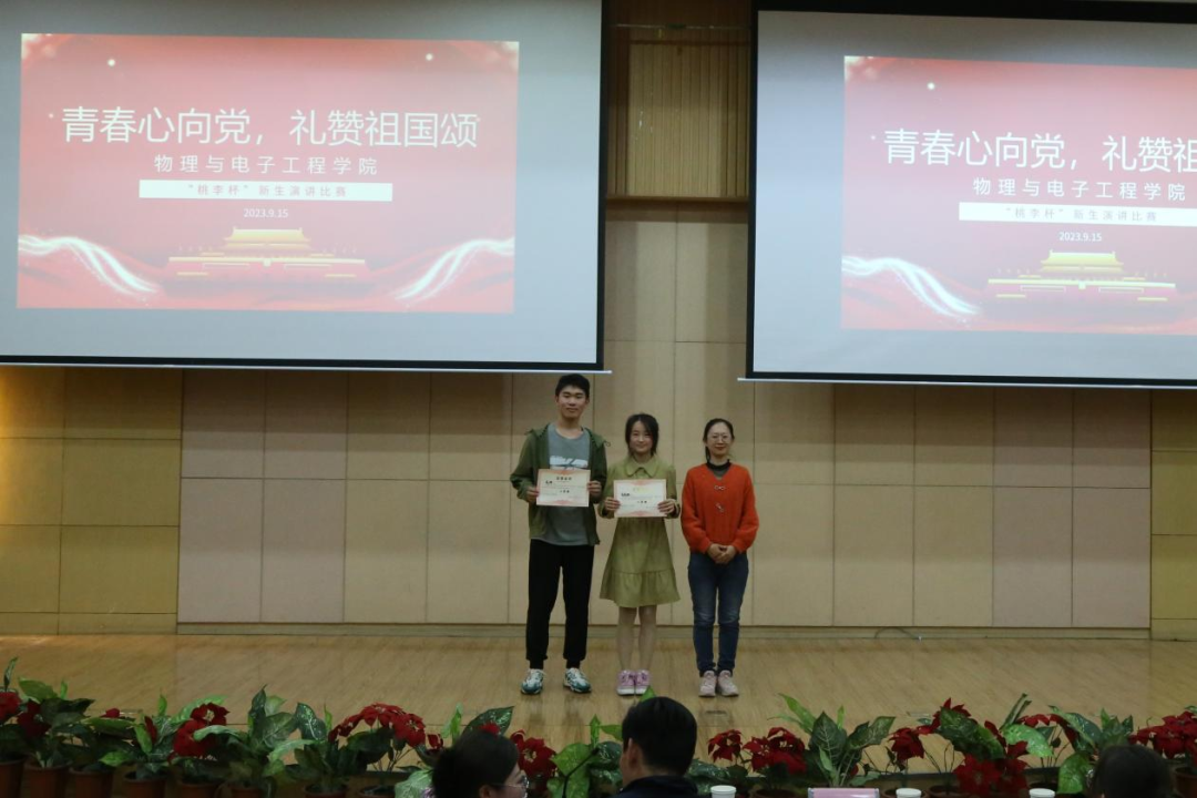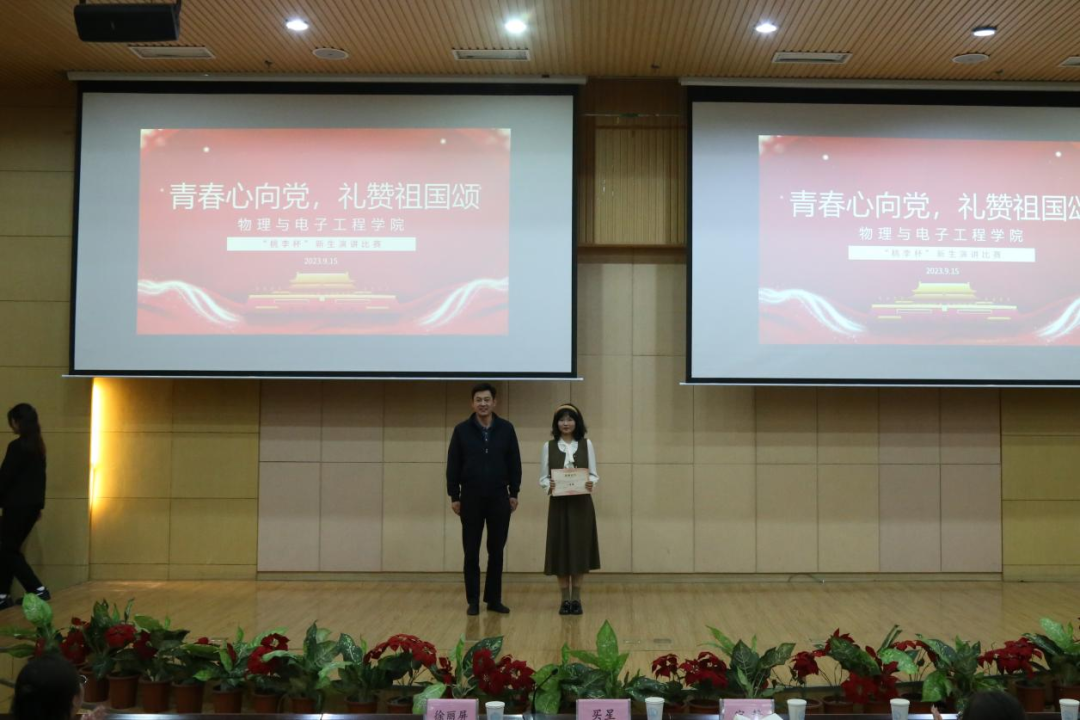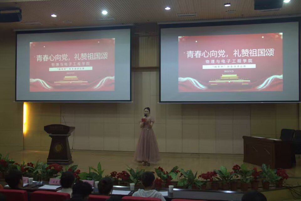 为庆祝中华人民共和国成立74周年,加强“三强班级”“三好宿舍”建设,歌颂伟大祖国的光辉历史和新时代发展建设取得的辉煌成就,充分展现beat365正版唯一官方网站2023级新生良好的精神风貌,beat365官网于2023年9月15日晚在国教楼三楼报告厅举办beat365正版唯一官方网站首届“桃李杯”新生演讲比赛院级初赛。学院党委副书记、纪委书记买星老师,学工办主任、分团委书记徐丽屏老师,辅导员宁静老师,第十四届分团委副书记赵燕燕,第十四届分团委学生会主席团成员李永琴,及2023级同学们共同参与了此次活动。
