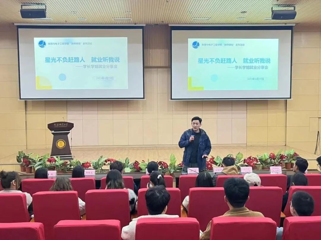 为助力物电学子提早树立正确的就业择业观念,提供经验交流的平台。4月19日20:00beat365正版唯一官方网站在国教楼三楼报告厅举办了“星光不负赶路人,就业听我说”学长学姐就业分享会,本次活动采用线上线下相结合的形式开展,邀请2023届毕业生中已就业和升学的6位学长学姐分享求职、考研经历,本次活动大一大二年级共600余人线下参加,大三支教班级通过腾讯会议线上参与。