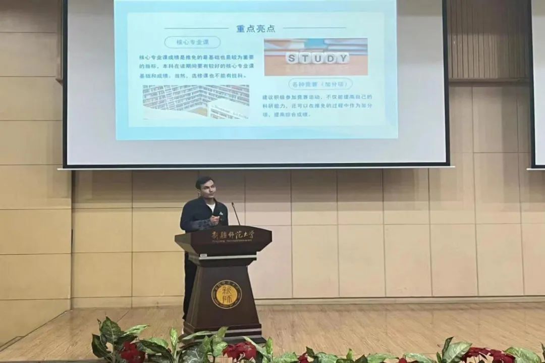 在活动中,物理学19-3班陈钰梅讲到了简历制作的重要性,并介绍自己求职备考经验,她建议提早明确自己的求职意向,确定好目标并为之努力,机会永远留给有准备的人。物理学19-2班阿布都热合曼·吐鲁洪学介绍了“硕师计划”的相关政策,并就“硕师计划”的申请条件与注意事项进行了详细的解读。同时,结合自身经历分享了“硕师计划”具体的推免流程,尤其指出要重视普通话练习和英语四级的准备。物理学19-5班宋麒麟分享了考研过程中:院校选择、心态调整、初试复试三方面的备考经验。电子信息科学与技术19-6班郭子俊,分享了应届生秋招信息查找的途径和简历撰写的注意事项。他特别说到,简历实际上是自我推销,根据不同岗位有所侧重,最好在项目和求职岗位之间有所关联,注意掌握技巧,避免出现低级错误。互动答疑环节中,在场同学结合自己的实际求职意向踊跃提问,学长学姐分别就问题作仔细的解答,勉励同学们避免焦虑、主动出击、积极行动。