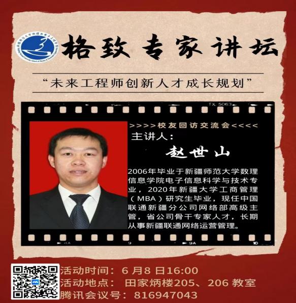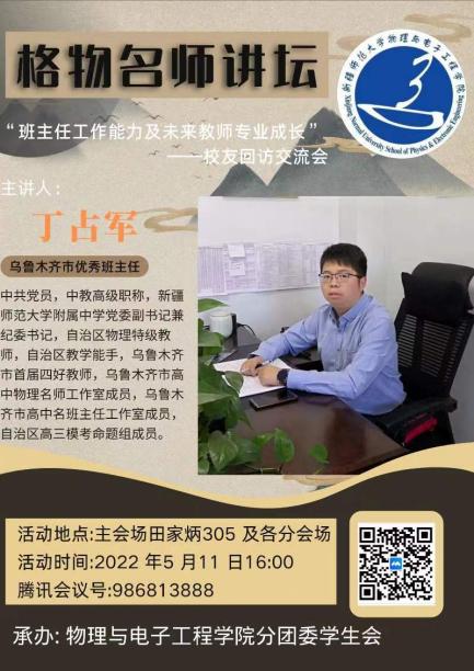 目前学院已邀请2002届毕业生、自治区教学能手、物电学院院长路俊哲,2011届毕业生、内蒙古大学物理科学与技术学院教授刘志峰,2006届毕业生、西安科技大学通信与信息工程学院副教授黄晓俊,2006届毕业生、自治区物理特级教师丁占军,2006届毕业生、中国联通新疆分公司网络部高级主管赵世山等优秀校友,分别结合专业特色、学科发展、以及求学经历和就业经历,向学弟学妹们倾情分享。邀请原物理学12-3班阿布拉·阿不都热西提(现任喀什市东城第七初级中学德育副校长)、2017级课程与教学论研究生宁静(现任乌鲁木齐市一中教师)、电子信息科学与技术13-4班代洪林(目前就职于人民银行乌鲁木齐中心支行)、物理学14-1班胡文平(华中科技大学在读博士)做回访交流,讲述成长经历以及就业发展感悟。