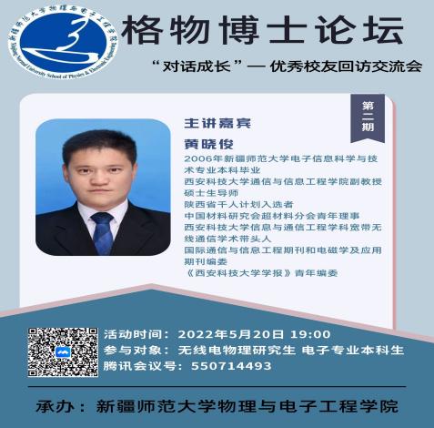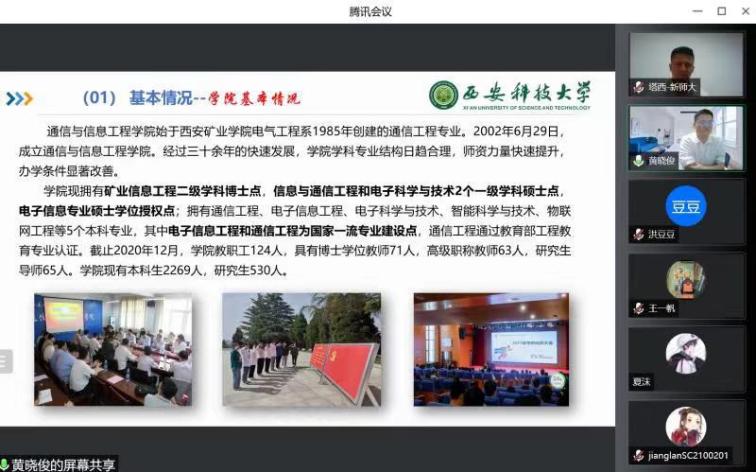 “格致博士讲坛”优秀校友黄晓俊副教授对西安科技大学通信与信息工程学院进行介绍,并就电子专业考研开展交流分享