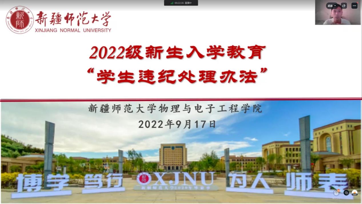 按照学校2022级新同学入学教育工作安排,帮助2022级新同学更好了解学校发展沿革,尽快适应大学学习、生活,学院学工办于9月17日下午通过线上会议方式,组织2022级全体新同学开展了校史、校规、法治专题教育活动。