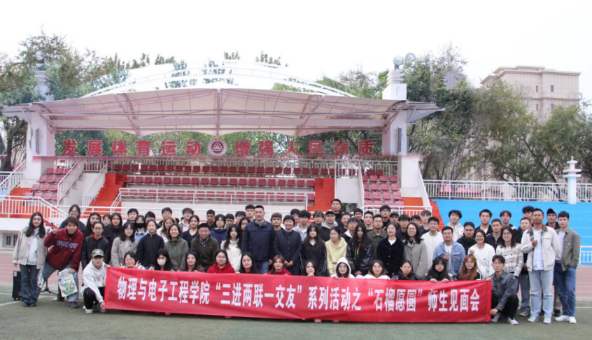 为激励广大师生做新时代民族团结进步的践行者、促进者、守护者,不断促进各族师生交往、交流、交融,将“三进两联一交友”活动推向深入。10月16日,beat365正版唯一官方网站在昆仑校区田径场组织开展了“三进两联一交友”系列活动“石榴愿圆”师生见面会,学院领导、辅导员、班主任、相关机关干部教师和联系学生共计100余人参加此次活动。活动由学院辅导员周丽茹主持。