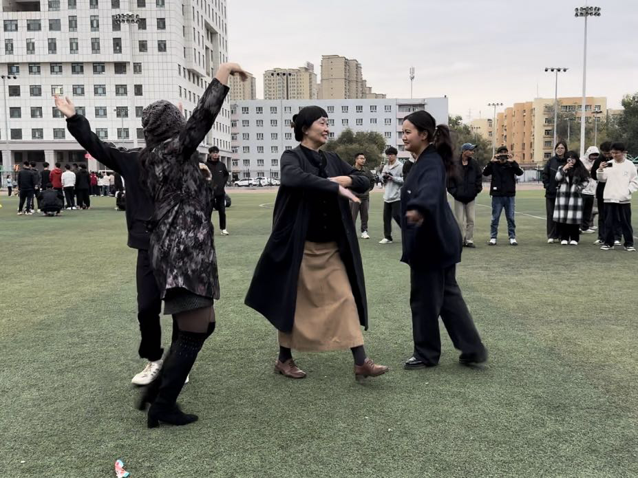 活动还开展了“电流”传递、五人六足、丢手绢等师生团队游戏,游戏中师生相互配合、相互支持,拉近了距离,增进了感情。活动在师生共跳一支舞的欢乐气氛中圆满结束。