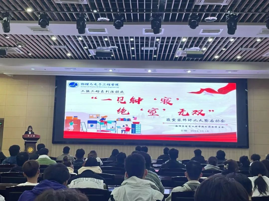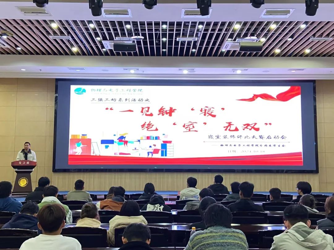 为落实立德树人根本任务,促进学风校风建设和精神文明建设,结合beat365官网“三强三好”达标建设工作,为引导2024级同学参与到“三强三好”创建活动中,营造整洁舒适温馨的寝室环境,彰显青春朝气,展示寝室风采,beat365正版唯一官方网站于10月18日晚在国教楼一楼报告厅召开第五届“一见钟‘寝’,绝‘室’无双”寝室装饰评比大赛启动会。