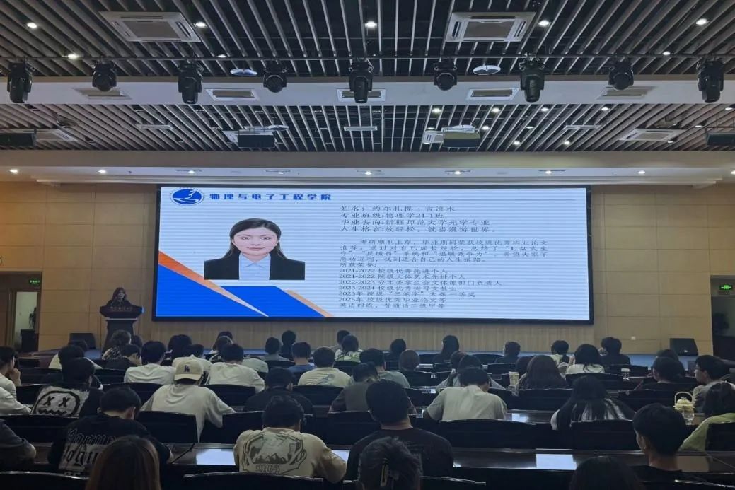 活动中,就业专干、2024级辅导员苑运强老师向同学们进行了就业政策宣讲,号召同学们做好职业规划、转变就业观念,积极寻找就业机会,做好求职准备。电子信息科学与技术21-5班佘青青讲述了简历制作的重要性,并介绍自己求职备考经验,建议提早明确自己的求职意向,确定好目标并为之努力,机会永远留给有准备的人。物理学21-3班于知良介绍了“推免计划”的相关政策,并就“推免计划”的申请条件与注意事项进行了详细的解读,同时结合自身经历分享了“推免计划”具体的推免流程。物理学21-1班约尔扎提·吉浪木分享了在考研过程中院校选择、心态调整、初试复试三方面的备考经验。物理学21-4班郝雨茁分享了应届生秋招信息查找的途径和简历撰写的注意事项,并根据自身经历讲述了根据不同岗位简历需要有所侧重的重要性,详细了解项目和求职岗位之间的关联。在互动交流环节中,同学们结合自身实际踊跃提问,学长学姐分别就问题仔细解答,勉励同学们避免焦虑、主动出击、积极行动。