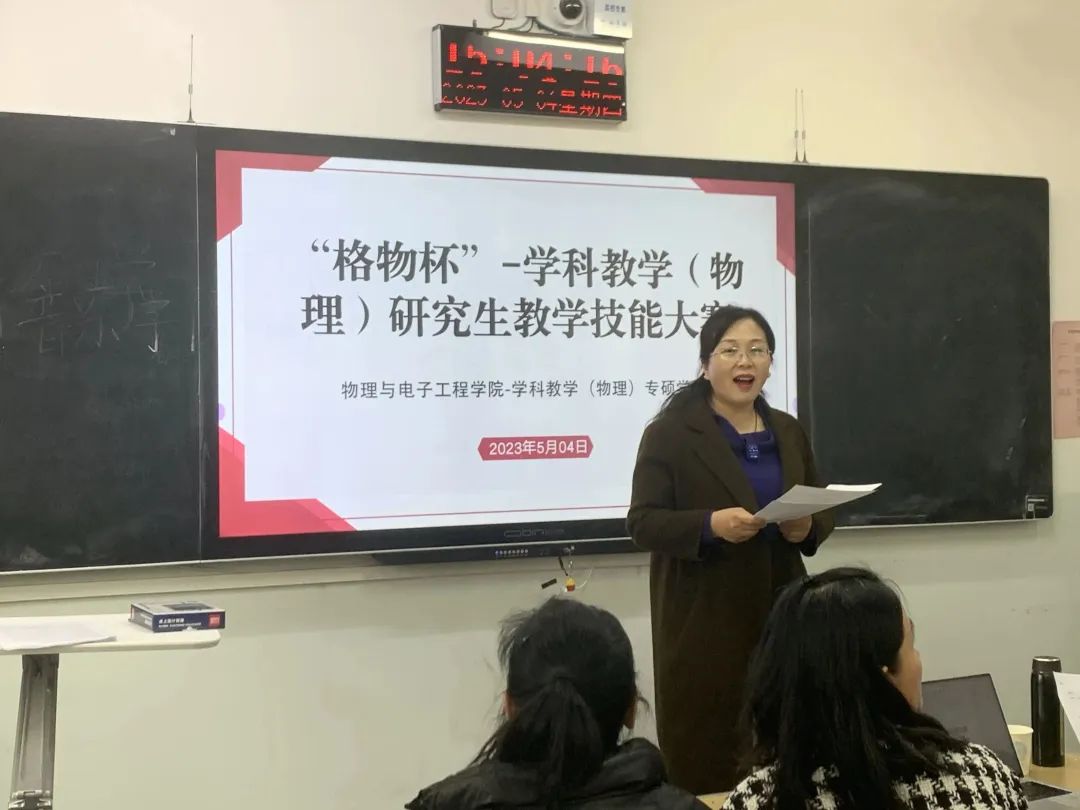 为进一步提升研究生专业素养,加强研究生教学技能创新能力培养,为参加学校第二届全日制教育硕士专业学位研究生教学技能大赛打下坚实基础,2023年5月4日,beat365正版唯一官方网站举办“格物杯”研究生教学技能大赛。党委副书记、院长路俊哲参加比赛并致辞。邀请张万军、张艳燕、陈雪娇、石翠、何晓等5名教师担任评委,共有10名选手参加本次比赛。