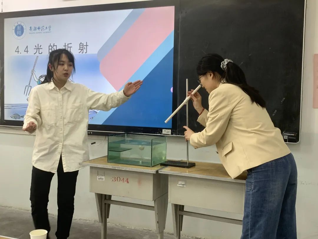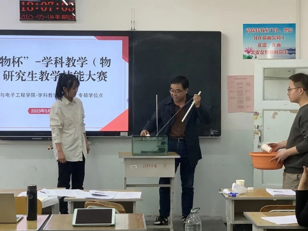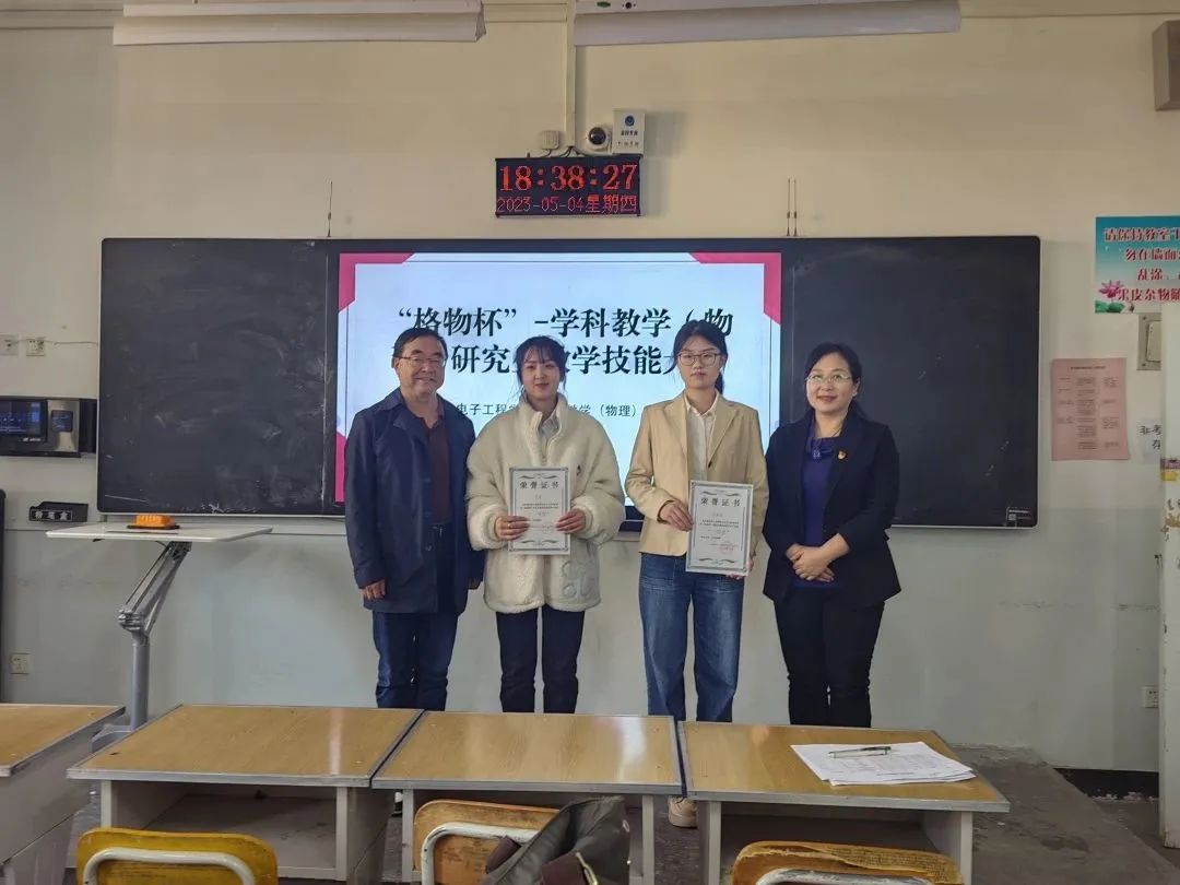 经过角逐,栗恺悦同学讲授的《光的直线传播》和李爽同学讲授的《光的折射》获得一等奖,并获得参加beat365官网第二届全日制教育硕士专业学位研究生教学技能大赛的资格。