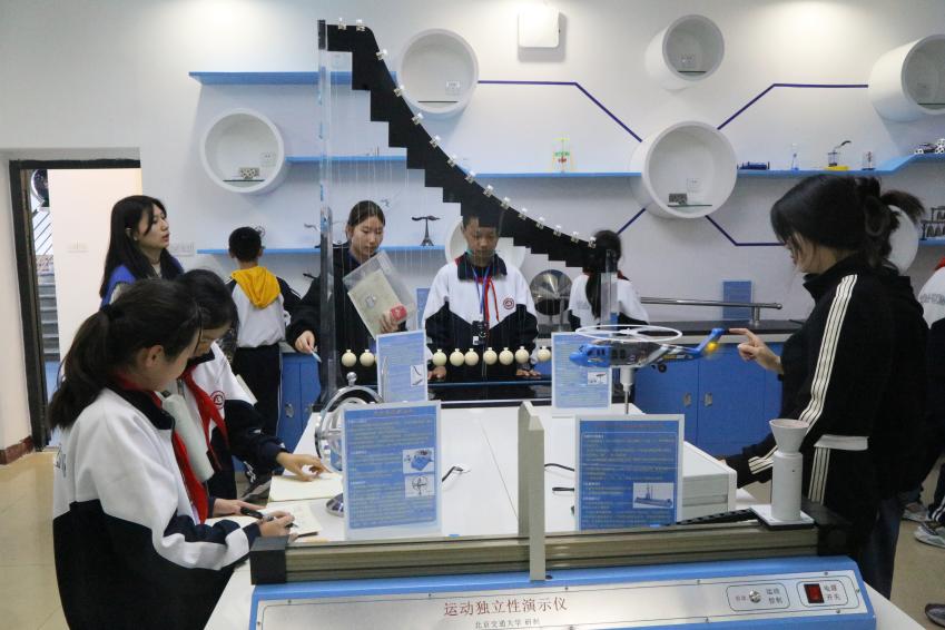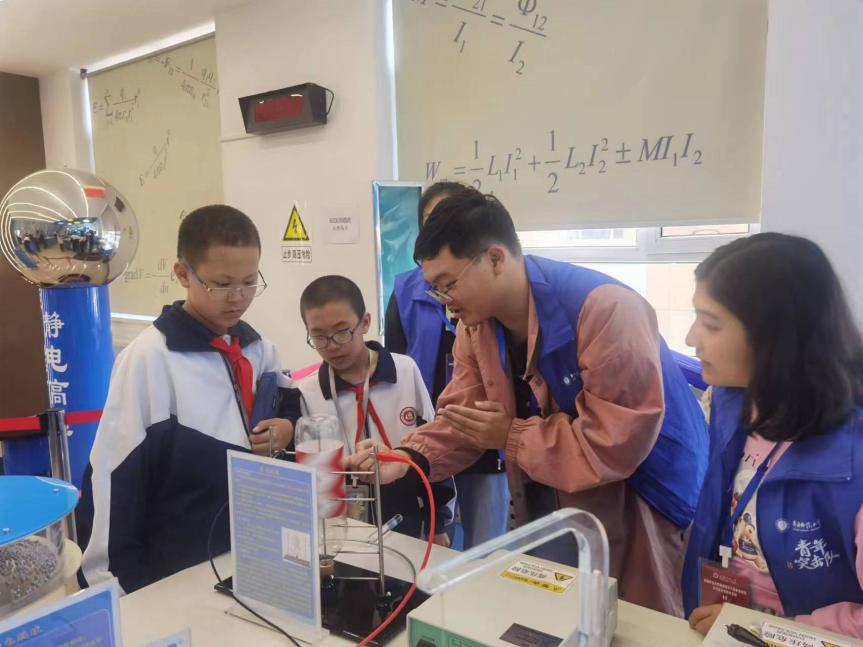 环境育人思想是中国传统文化育人的重要理念,从“孟母三迁”的故事到“蓬生麻中,不扶自直”的成语,无不在强调环境对于人的成长的重要性,beat365正版唯一官方网站根据环境育人的理念建设了物理演示与探索实验室。进入实验中心,就可以看到大厅顶部高清银河系星云图,从古至今中华民族从来就没有停止过对宇宙的探索,特别是,2022年中国空间站建成投入运营,深入开展科学研究和太空实验,推动中国空间科学研究进入国际领先行列,为人类文明发展作出贡献。科普讲解员结合中国空间科学研究成果图片进行开场介绍,生动讲述了科学家探索宇宙的故事,增强学生们的民族自豪感、使命感和责任感。随后,科普讲解员带领大家开启了实验室参观、现场实验演示和原理讲解等活动环节,启迪了中小学生对物理领域兴趣,提升了科学素养。在科普活动过程中,中小学生积极提问,与大学生科普讲解员进行深入交流,指导老师适时补充,使得整个活动更具互动性和参与感,充分体现了2023年全国科普日主题“提升全民科学素质,助力科技自立自强”的主题。