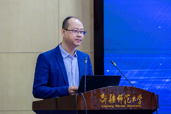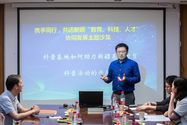 学术沙龙以“携手同行,共话新疆‘教育、科技、人才’协同发展”为主题,专家们与一线教师围绕“科普基地如何助力新疆基础教育科普活动的开展”进行交流研讨。陈征做了题为《科学思想与实验实践——做好“双减”下的科学教育加法》的报告。