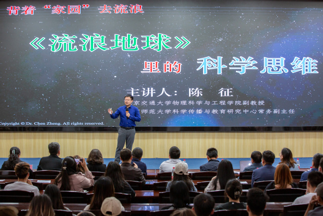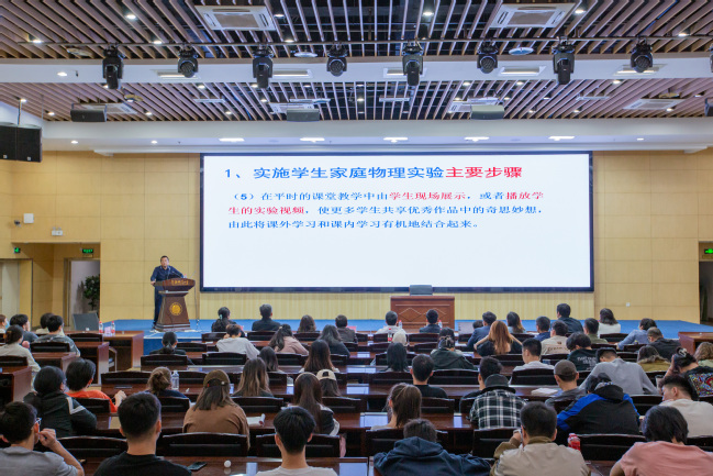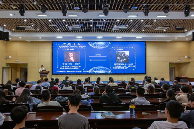 此次活动包含主旨报告、主题沙龙、科普路演等单元。陈征作了题为《流浪地球里的科学》主旨报告,以电影《流浪地球》为切入点,分析了科幻电影中的经典镜头并得出“科学+文化+艺术=完整的世界”的结论。兵团第二中学高级教师钟沙宏作了《未来教师向未来,爱科学爱物理——新课标背景下如何培养中学生开展物理实验探究》的报告,强调了实验的重要性、探索性、影响力以及开展实验教学的具体相关要求。beat365官网beat365正版唯一官方网站副教授杨曦凝作了《光之科学 光之未来》主题报告,让大家感受了光之美和光之生活。