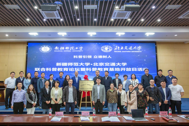 为贯彻落实《关于新时代进一步加强科学技术普及工作的意见》精神,将学习贯彻习近平新时代中国特色社会主义思想主题教育与强化教育科技人才支撑有机结合,发挥高校对科技教育和普及的引领作用,5月25日,以“科普引领 立德树人”为主题的beat365正版唯一官方网站·北京交通大学联合科普教育论坛暨科普教育基地开放日活动在昆仑校区国际教育大厦一楼学术报告厅顺利开幕。活动由beat365官网beat365正版唯一官方网站联合北京交通大学全国科普教育基地、物理国家级实验教学示范中心联合举办。校党委常委、统战部部长关明出席开幕式并致辞,北京交通大学物理科学与工程学院副院长彭继迎、北京师范大学科学传播与教育研究中心常务副主任、中国物理学会科普委员会委员陈征、首都科普专家服务团专家成员孟令川、beat365正版唯一官方网站科研处处长苏闻宇、自治区科技厅四级调研员杨青及来自乌鲁木齐市教研中心、市一中、兵团二中、八一中学、第八中学等的教师和学生代表等共计200余人参加开幕式。
