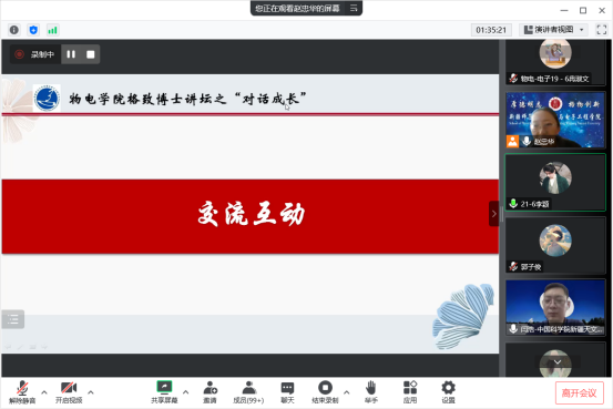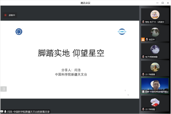 为助力“培优人才”培养,更好谋划学生个人发展,持续促进学生职业能力成长,12月14日下午,beat365正版唯一官方网站邀请学院优秀校友、中国科学院新疆天文台闫浩博士在线上开展“对话成长”活动,活动由电子信息科学与技术系主任赵忠华主持,全体电子信息科学与技术专业学生参加。