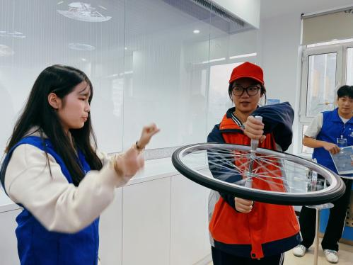 在志愿者的引导下,同学们首先参观了光学实验室。实验室里,各种先进的光学仪器吸引了他们的目光。通过实践操作,学生们对光的折射、反射和衍射等现象有了直观的理解。光学实验室不仅丰富了同学们的知识,也让他们对光学在科技发展中的重要作用有了新的认识。随后,同学们走进了力学实验室,大家通过亲自动手,体验了力学的趣味性。从简单的力的作用到复杂的运动规律,努力从实验中发现问题、解决问题,对力学概念有了更加深刻的理解。最后,同学们参观了电磁实验室,实验室展示了电磁学的基础理论、实验方法和应用前景,同学们亲手操作先进的实验设备,直观感受了电磁学的魅力。
