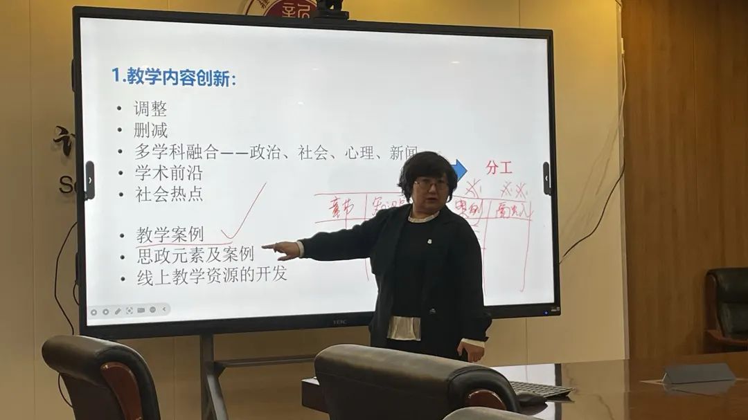 讲座后教师们开展了交流讨论。大家踊跃发言,针对当前课程建设中面临的诸多问题与挑战展开热烈讨论。围绕如何在有限课时内实现教学内容的有效拓展,怎样平衡理论教学与实践教学的比重,以及如何精准评估创新教学方法对学生学习效果的影响等,大家各抒己见,集思广益,提出了优化课程内容结构、整合线上线下教学资源、建立多元化的教学评价体系等、富有建设性的改进建议。