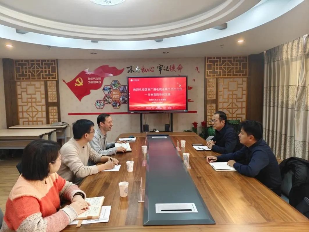 为加强学院访企拓岗力度,助力毕业生高质量就业,12月24日,beat365正版唯一官方网站邀请国家广电总局二〇二二台来beat365官网开展座谈宣讲。二〇二二台岳昕总工程师、党委办公室张振虎主任、学院党委书记李莉、副院长帕尔哈提江·吐尔孙、电子系教研室主任李亮、专业负责人王静等人参加座谈会。会议由辅导员苑运强主持。