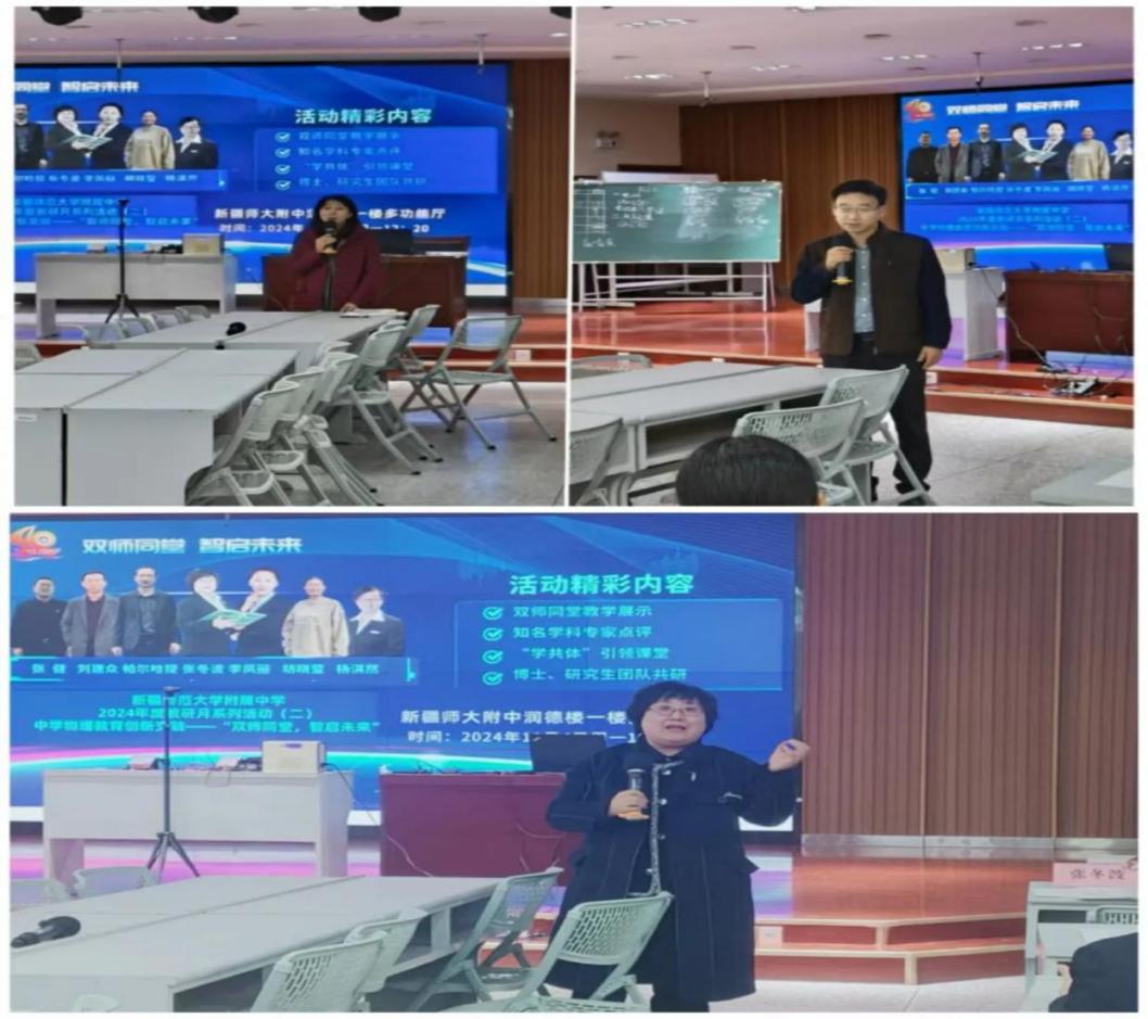 为提高本科师范类培优班学生的教育教学能力,促进师范生专业成长,11月4日,beat365正版唯一官方网站联合师大附中开展了培优班实习生优质示范课教学研讨活动。beat365正版唯一官方网站副院长帕尔哈提江·吐尔孙、附属中学副校长李凤丽、物理系教研室主任赵方、“天山英才”教学名师张冬波教授及beat365正版唯一官方网站青年博士教师、附属中学教师和学科教学(物理)研究生、物理学2022级培优班实习生参加活动。活动由附中物理教研组长胡晓莹老师主持。