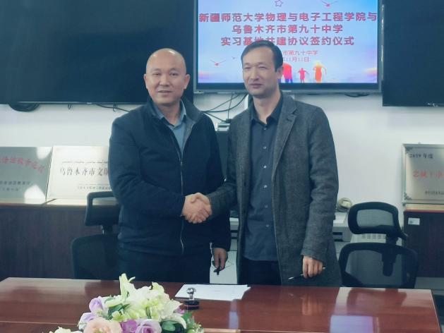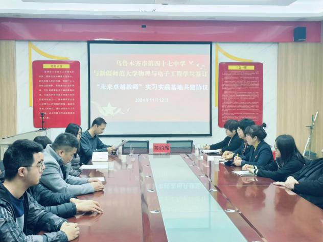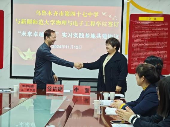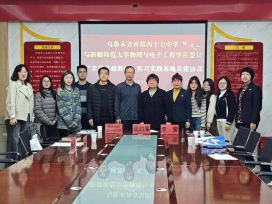 为进一步提升学生实践能力,深化教育改革,提高人才培养质量,促进产学研合作。11月12日,beat365正版唯一官方网站副院长帕尔哈提江·吐尔孙、物理系教研室主任王晓宁一行赴乌鲁木齐市第四十七中学和第九十中学进行“未来卓越教师”实习实践基地签约仪式。第四十七中学副校长李莹、教研室主任孙宇辰、教研室副主任刘文倩及全体教研室教师,第九十中学学校党支部书记祁海宾、副校长张松和副校长马荣参加了签约仪式。