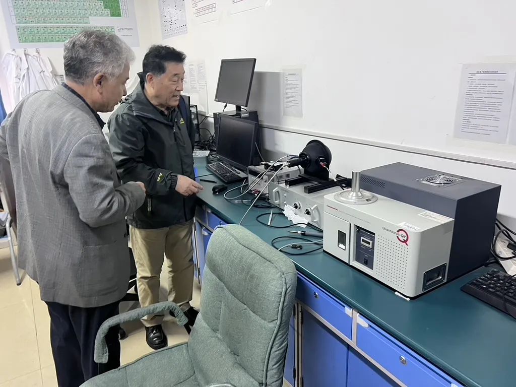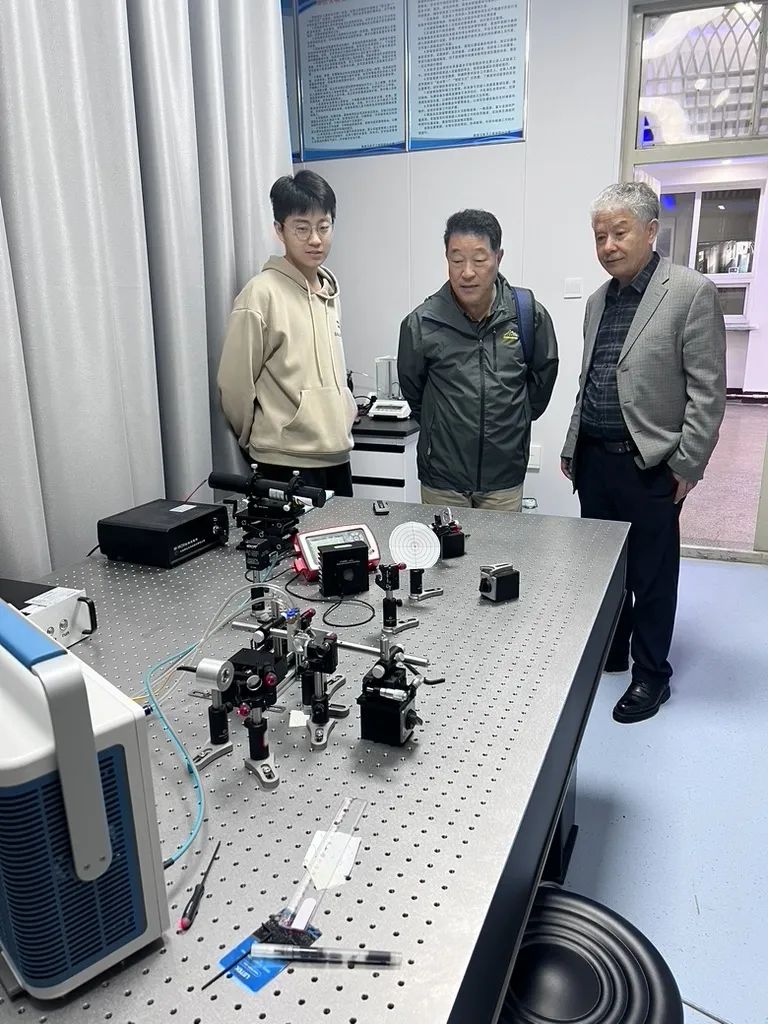 会后,在自治区重点实验室主任艾尔肯·斯地克教授的陪同下,刘铁根教授参观了新疆矿物发光矿物与光功能材料研究自治区重点实验室。艾尔肯·斯地克教授详细介绍了实验室在矿物发光机理、光功能材料开发等方面的研究成果及应用前景,展示了实验室在促进地方经济、服务国家战略需求方面的重要作用,并就双方未来在材料科学、光电技术等交叉领域的合作可能性进行了探讨。刘铁根教授还与正在实验室进行科研实验的研究生进行了互动交流,耐心解答了他们在科研道路上遇到的困惑,鼓励大家要勇于创新、敢于探索未知领域。