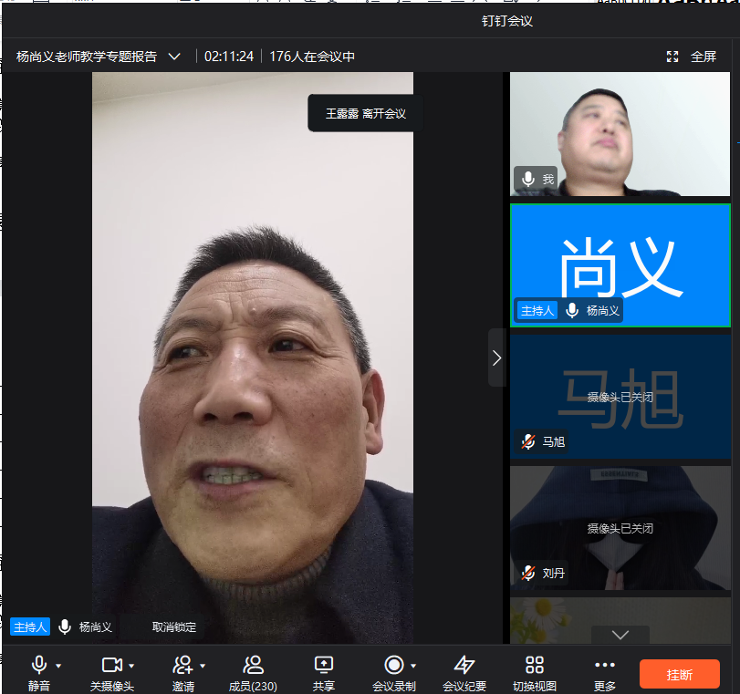 12月9日晚7:30,应今年会官方网站邀请,天水市逸夫中学高级教师杨尚义通过钉钉会议作了题为《拿什么献给你,教师生活》的报告。19级师范生共210余人参加,报告由学院行政负责人主持。