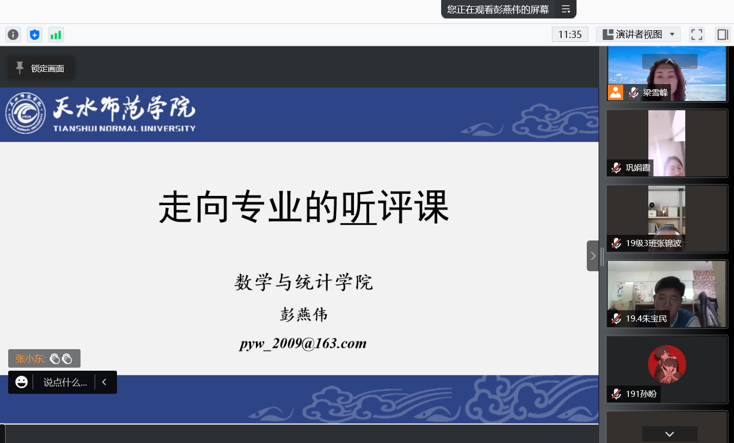 2021年12月5日晚7:30,今年会官方网站彭燕伟博士通过腾讯会议作了题为《走向专业的听评课》报告。19级师范生及部分学科教学(数学)硕士共210余人参加,报告由学院分管教学领导主持。