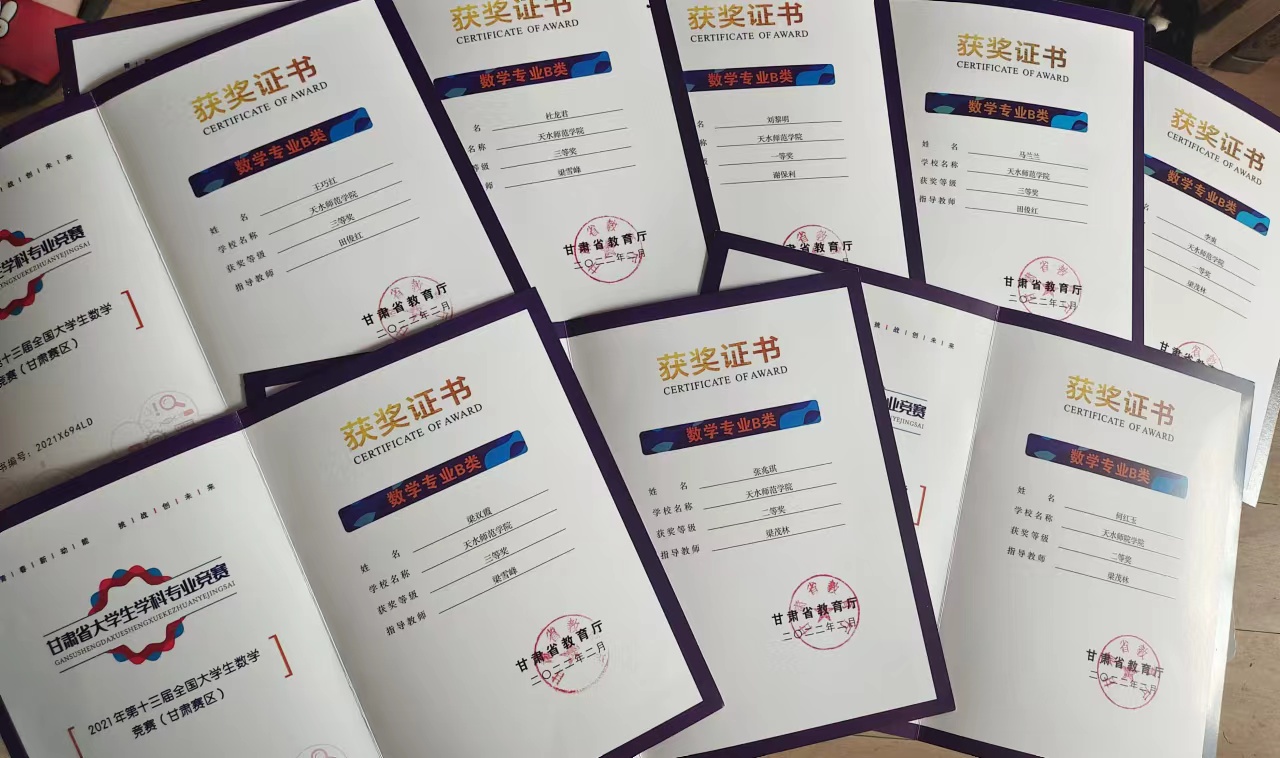 由中国数学会主办的2021年第十三届全国大学生数学竞赛(甘肃赛区)获奖名单近日揭晓。今年会有80名同学喜获佳绩。数学专业B组获奖59项,其中一等奖12项,二等奖24项,三等奖23项;非数学专业获一等奖3项,二等奖3项,三等奖15项,共21项。获奖层次和数量在省属高校中名列前茅。