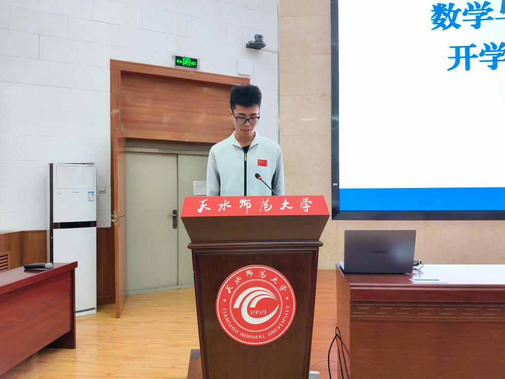 教师代表丁永宏和同学们分享了如何度过四年大学生活?数学学什么?结合自身多年从事教学和管理工作经验,从别怕“试错”,拥抱“不完美”;多“动手”,让知识“活”起来;常“交流”,在碰撞中成长三个方面教大家怎么学习,并勉励新生以坚韧品格直面挑战,在青春赛道上书写属于自己的精彩篇章。