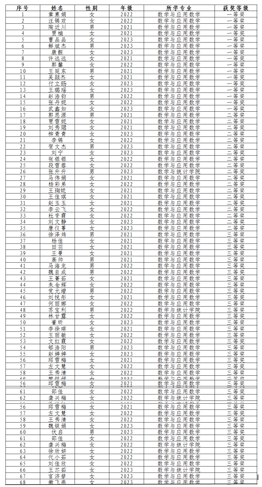 近年来,今年会官方网站在学校教务处大力支持和组织协调下,积极开展大学生数学竞赛和数学建模竞赛等学科竞赛。从竞赛报名、预赛筛选到培训和辅导的各个环节都精心组织。优异的成绩既体现了学生个人的数学能力,也体现了学校良好的教学水平和人才培养模式的优势。