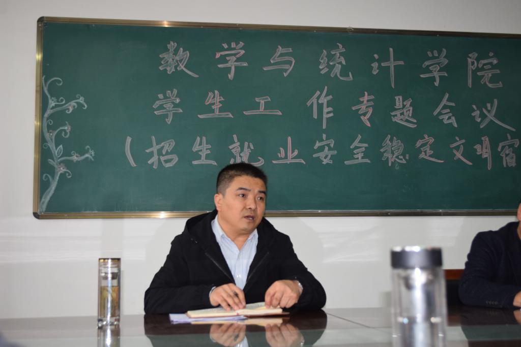 首先,提高政治站位,高度重视学生安全;其次,建立学生安全工作台账,有针对性地开展工作,逐一解决问题。再次,班主任要充分发挥班级管理作用,实现“三全育人”(全员、全过程、全方位)。要发挥好所有学生管理工作者的作用,要有作为,敢担当,经常深入学生班级、宿舍,及时掌握和了解学生学习、生活和思想状态。及时发现学生工作存在的安全隐患,做到防患于未然,确保校园安全稳定这个基本,为学院各项事业的发展提供良好的环境。同时,各班抓好网络意识形态和新媒体管理工作,牢固树立底线意识,守好各班级自媒体阵地。对毕业班学生工作吴书记强调,一定要认清当前的就业形势,转变就业观念,多种渠道就业,最终达到学校78%的就业率要求。最后吴书记说,学生在校期间的安全防范工作是全方位、多角度、多层次、多维度的复杂工作,需要统筹兼顾、师生联动、齐抓共管。学院党支部要发挥战斗堡垒作用,党员要起到模范带头作用,把党对各项工作的全面领导落到实处。