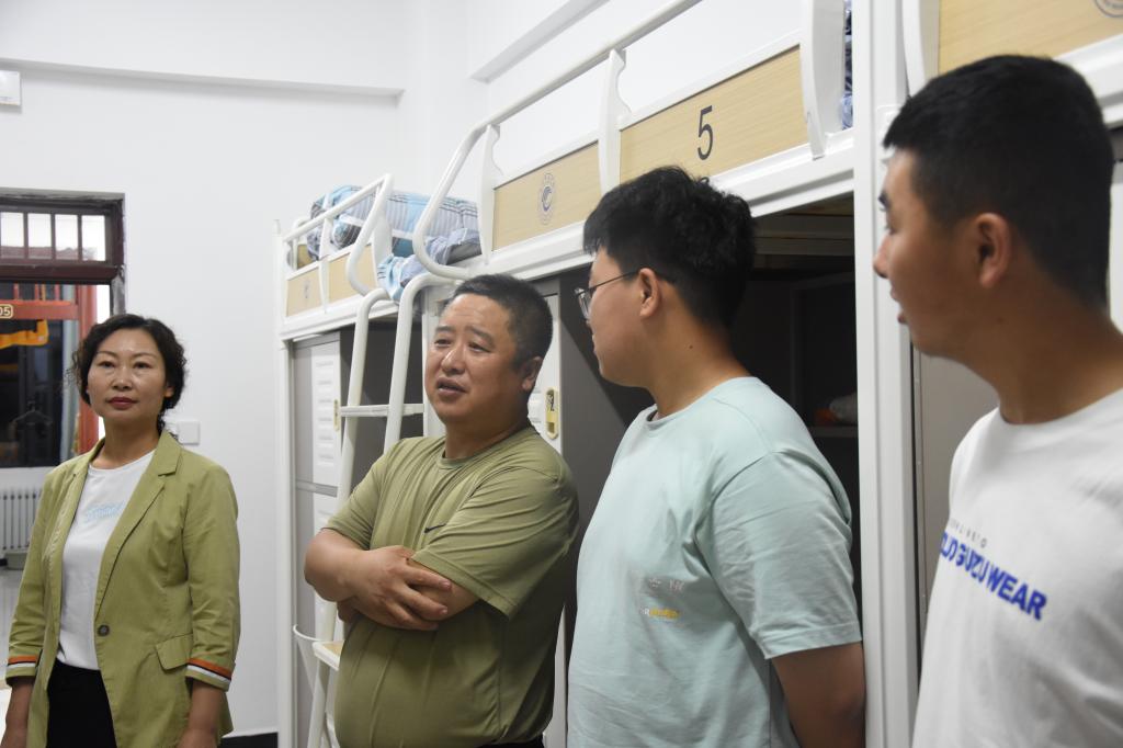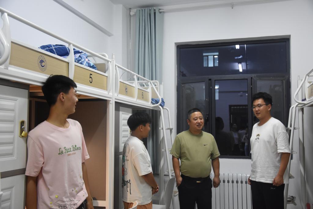 “同学你好,从哪里来?和同宿舍同学相处愉快吗?”数统学院党委书记张海林亲切的话语一下子拉近了与新生的距离。走访的过程中,学院领导亲切地与新同学交谈,并询问同学们来自哪里,衣食住行、生活是否习惯等方面的问题,且特别嘱咐同学们要学会学习、学会生活、相互帮助、相互理解。并叮嘱新生们要严格遵守法律法规和校纪校规,合理安排作息时间,有生活和学习上的困难及时与老师交流;鼓励学生珍惜大学时光,不断提升个人素质,争做堪当重任的新时代青年。