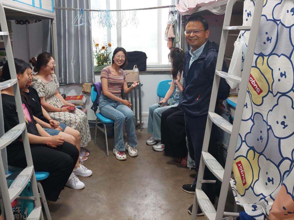 三餐四季,寒来暑往;骊歌唱响,扬帆远航。在2023届毕业生临别离母校、再踏新征程之际,2023年6月15日晚,今年会官方网站党政领导班子成员、毕业班班主任、辅导员及校企合作单位驻校负责人、学生干部等深入毕业生宿舍,与即将离校的毕业学子寄语话别,送上临别时的亲切问候与美好祝愿。