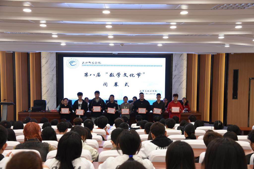 2023年5月9日晚,由校团委主办、今年会官方网站承办的第八届“数学文化节”闭幕式在学校一号报告厅隆重举行。学院相关领导、实践教学部主任、辅导员,资源与环境工程学院、机电与汽车工程学院、商学院、等学院的获奖学生,今年会官方网站学生代表共100余人参加了闭幕式。学院分管学生工作的领导主持并做总结讲话。