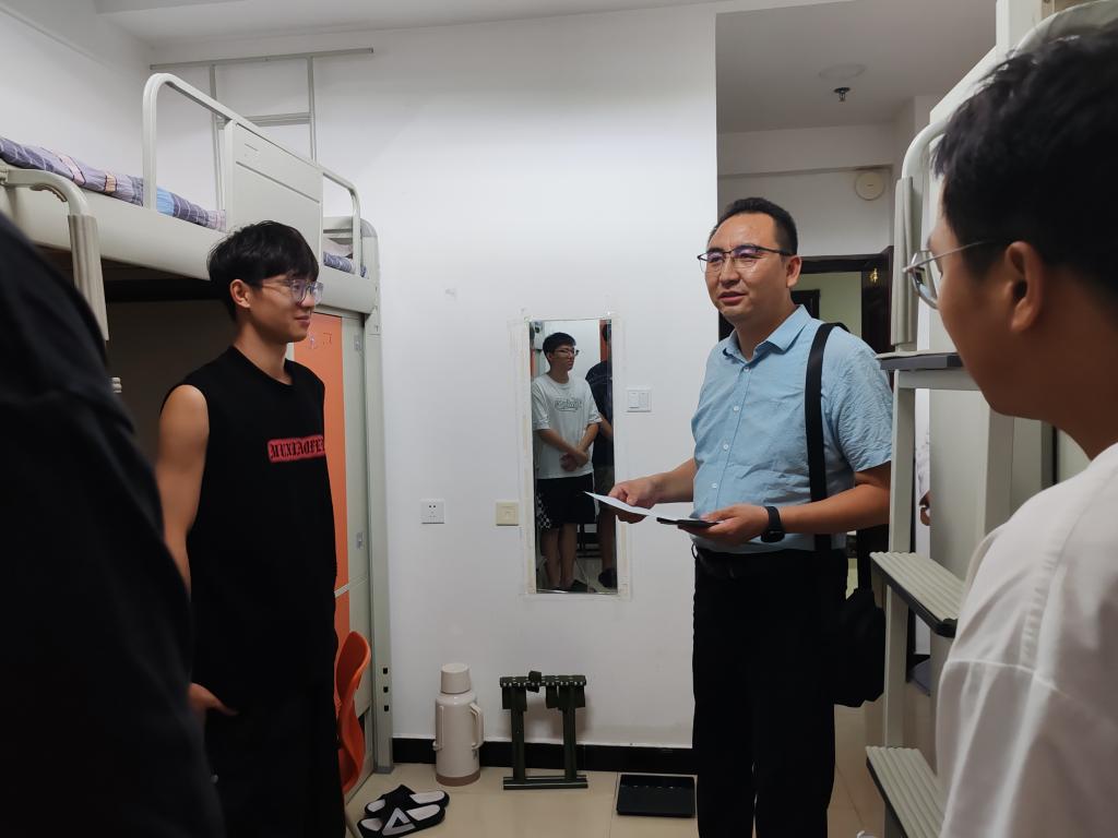 数学与统计学院领导及辅导员、班主任老师们还了解了新生宿舍设施设备,叮嘱学生要注意宿舍用电安全,提高防诈骗意识,注意自身财产安全等情况,同时遇到问题及时与班主任、辅导员老师进行联系寻求帮助。